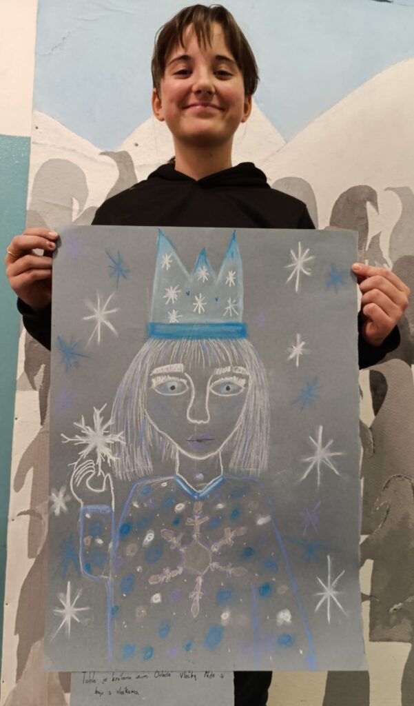Zima letos vládne jako už dlouho ne. A tak jsme se rozhodli dát ji trochu lidské podoby – ve výtvarce si to přece můžeme dovolit. Základem se nám stal vlastní portrét. A tady jsou naši vládci Zimy.