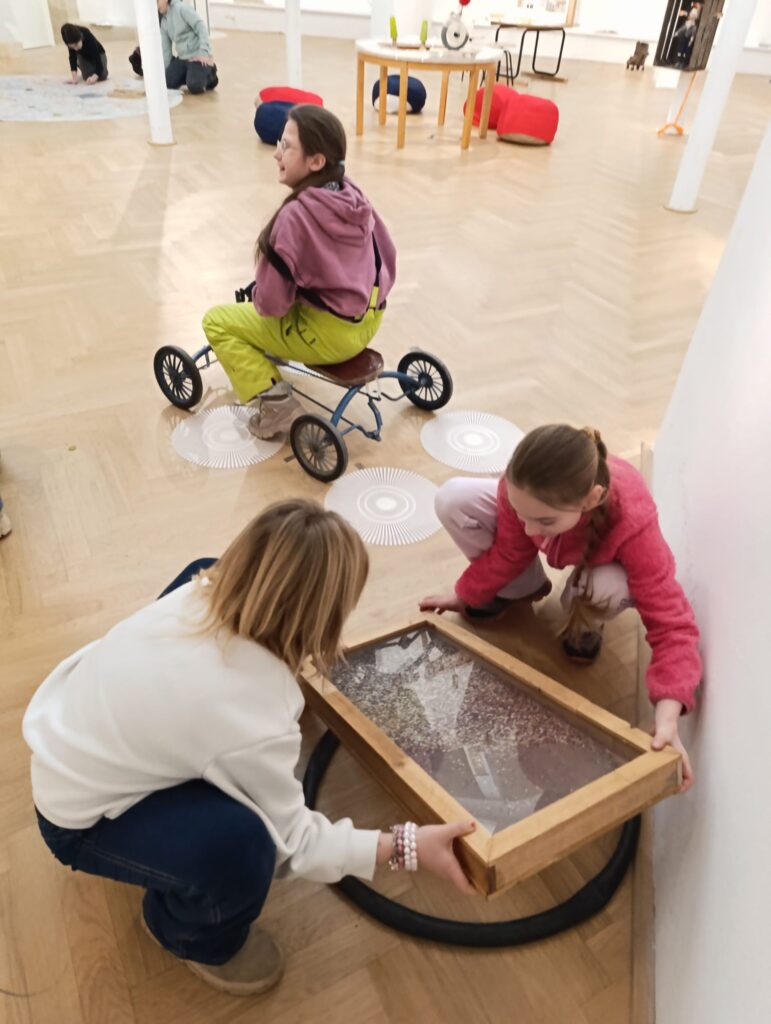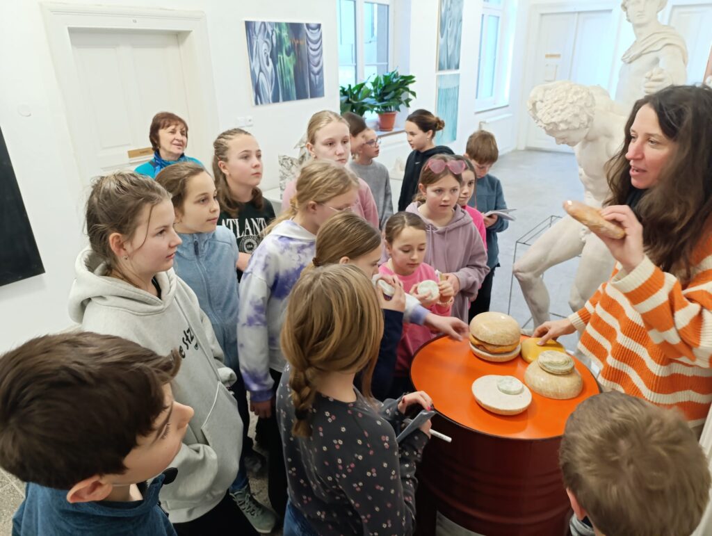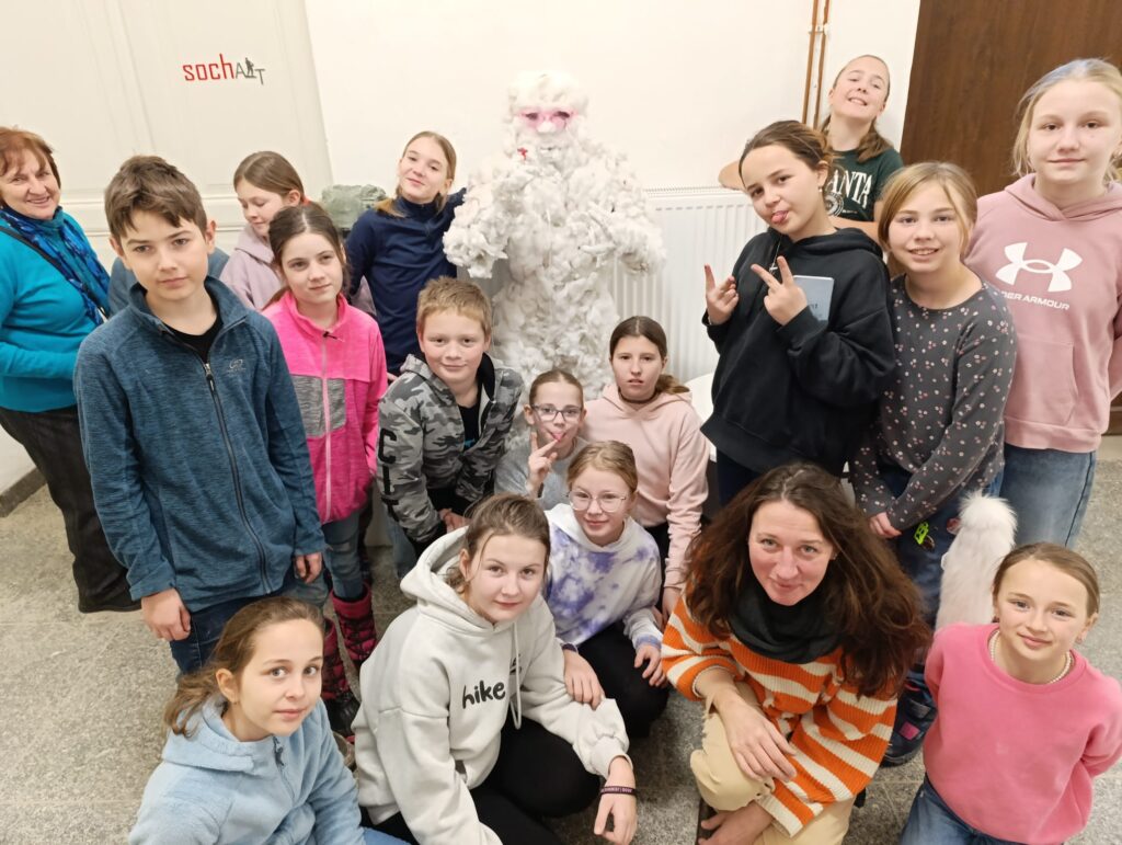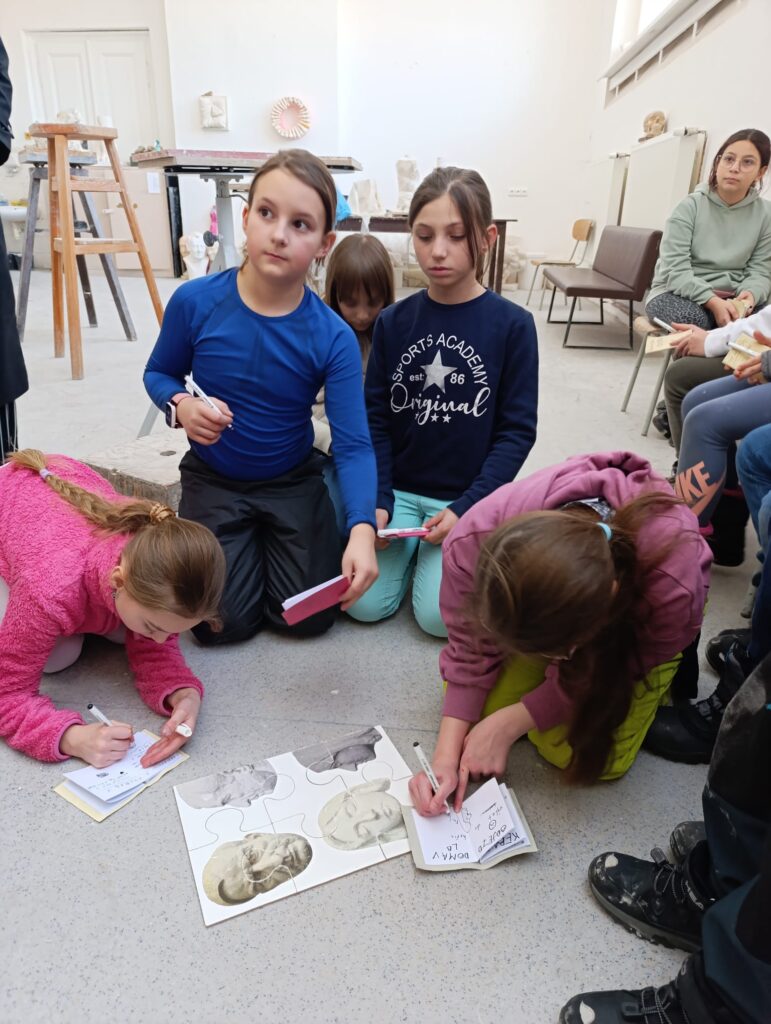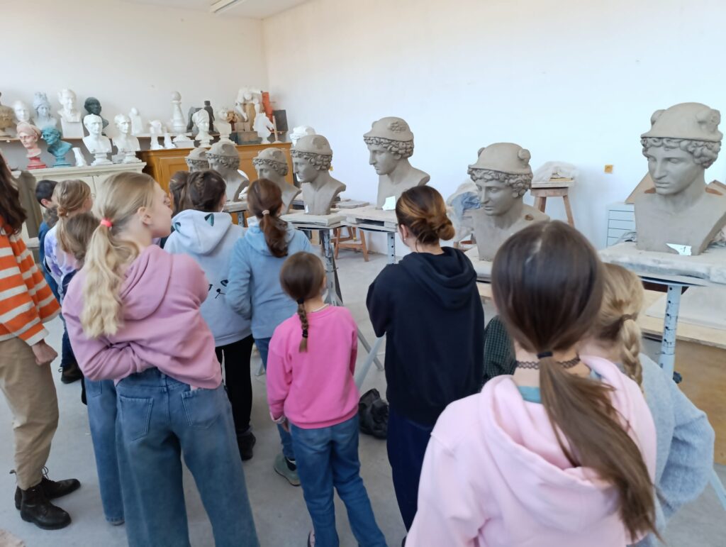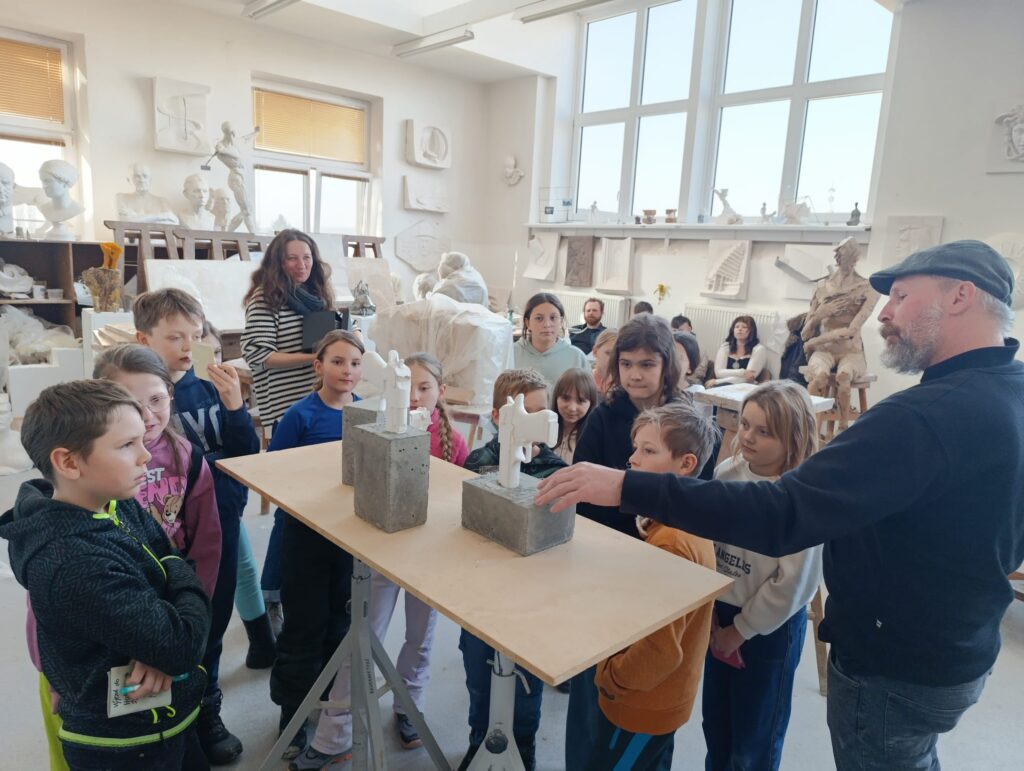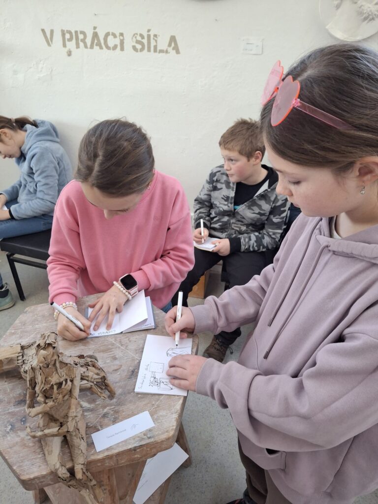 Po návštěvě muzea jsme se za autorkou výstavy vydali také do jejího pracoviště – Sochařské školy v Hořicích. Michaela Jezberová nás provedla celou školou, děti se setkaly se studenty a měly možnost vidět různé přístupy k umělecké tvorbě.